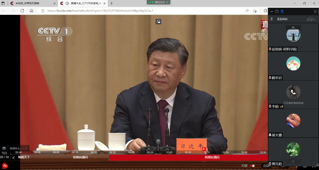 材料学院全体师生组织观看习近平总书记在庆祝中国共产主义青年团成立100周年大会上的重要讲话