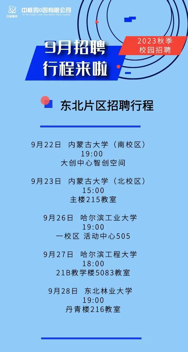中核四0四有限公司2023年秋季校园招聘必一运动站来啦